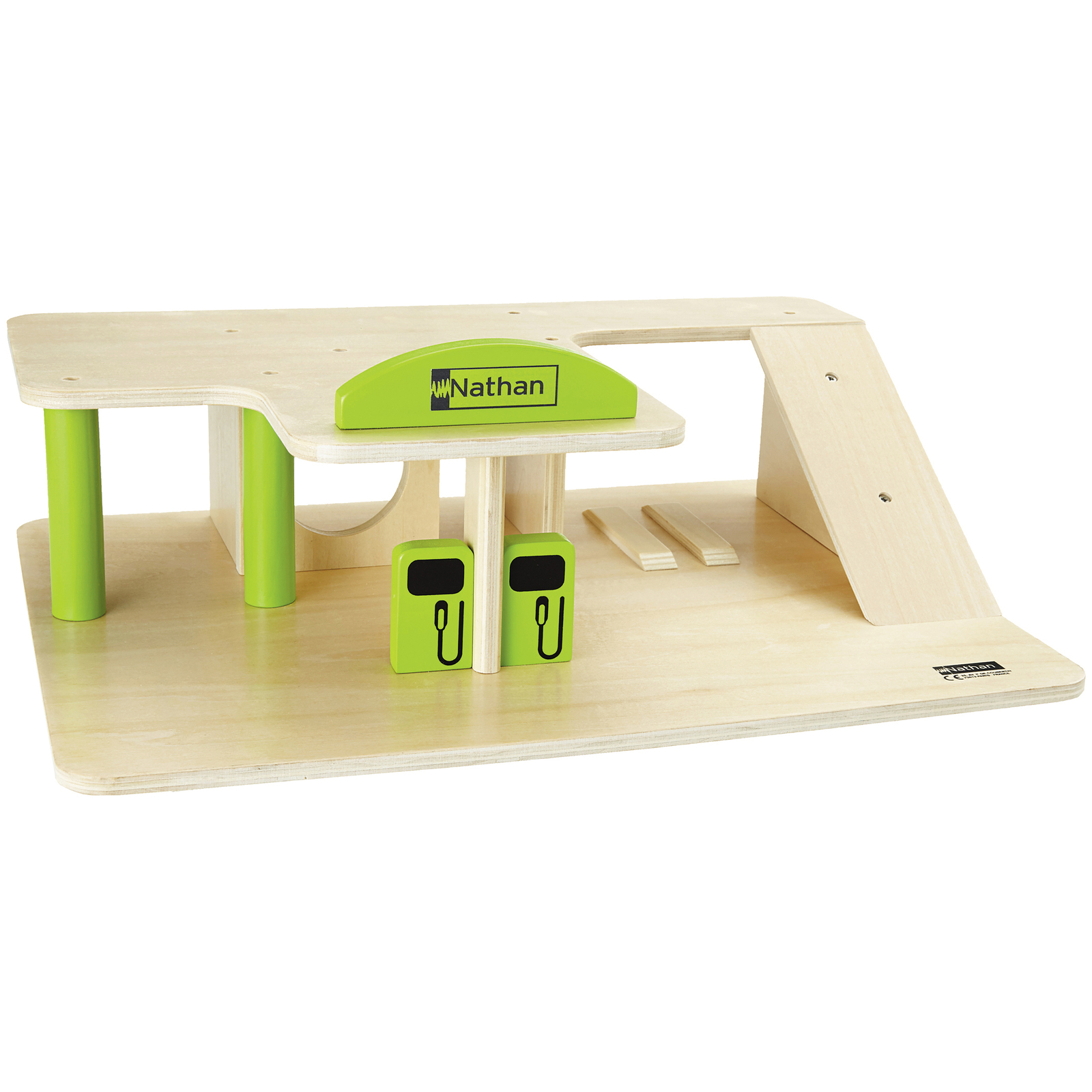 1 garage robuste et complet : 1 rampe d'accès, 1 pont élévateur fixe, 2 pompes à essence, 2 rouleaux mobiles et 1 coin boutique.1 garage robuste et complet : 1 rampe d'accès, 1 pont élévateur fixe, 2 pompes à essence, 2 rouleaux mobiles et 1 coin boutique. À utiliser seul ou à combiner avec le grand garage pour accueillir jusqu'à 6 enfants.• En bois contreplaqué verni incolore et laqué vert. • L/l/H : 30 x 40 x 14 cm. • Livré à plat avec notice de montage, sans voitures.