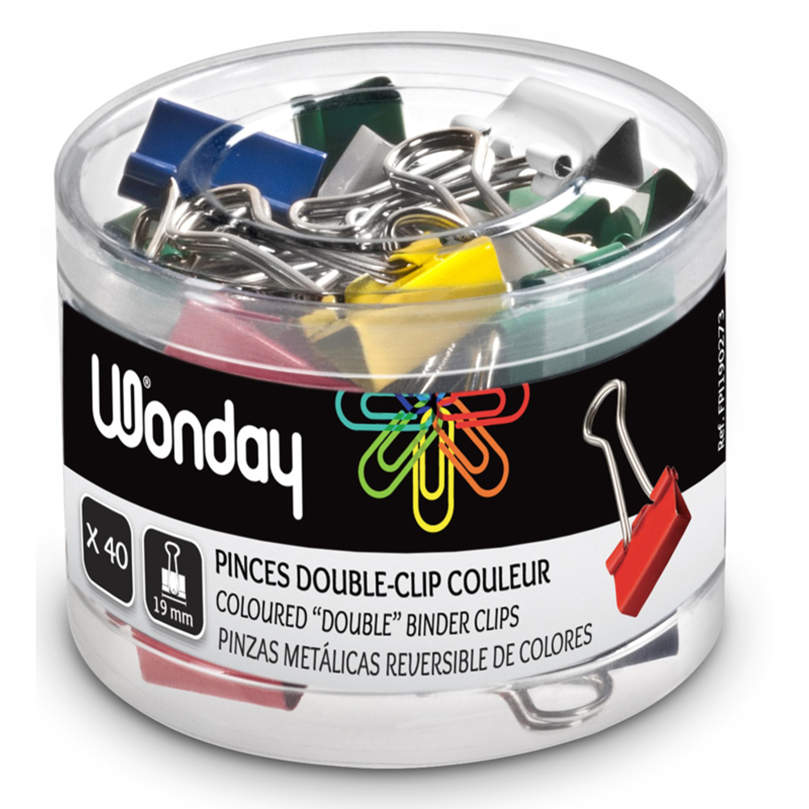 40 PINCES DOUBLE-CLIP 19MM COLORIS ASSORTIS