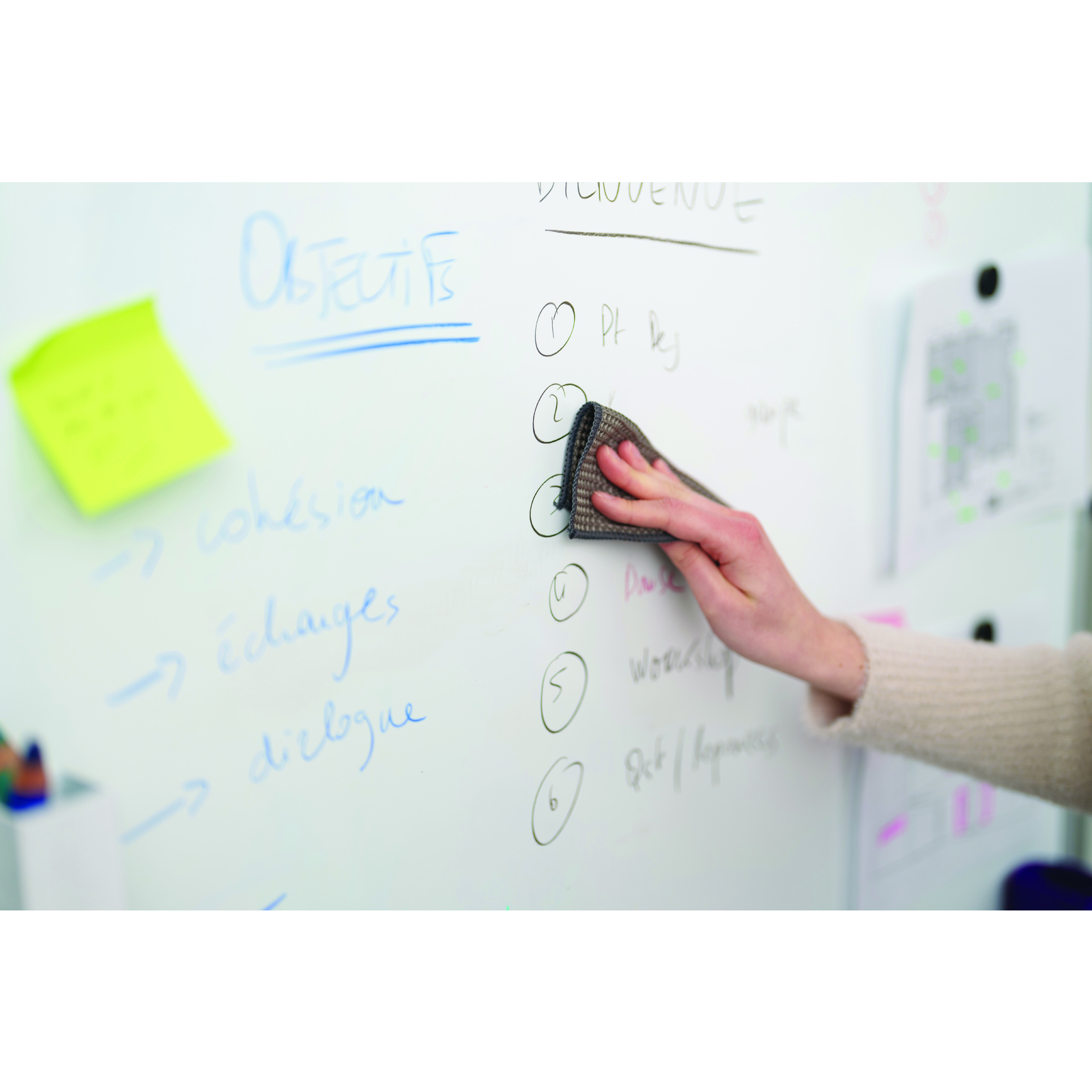 Mine spécialement dévelopée pour écrire ou dessiner sur des tableaux blancs, des ardoises, des paperboards. S'efface facilement à sec ou avec un chiffon humide sans laisser de traces. Tracé constant, ne sèche pas, sans odeur ni solvants.L'étui de 4 + 1 chiffonnette + 1 taille-crayons - 4 coloris assortis (bleu, noir, rouge, vert)