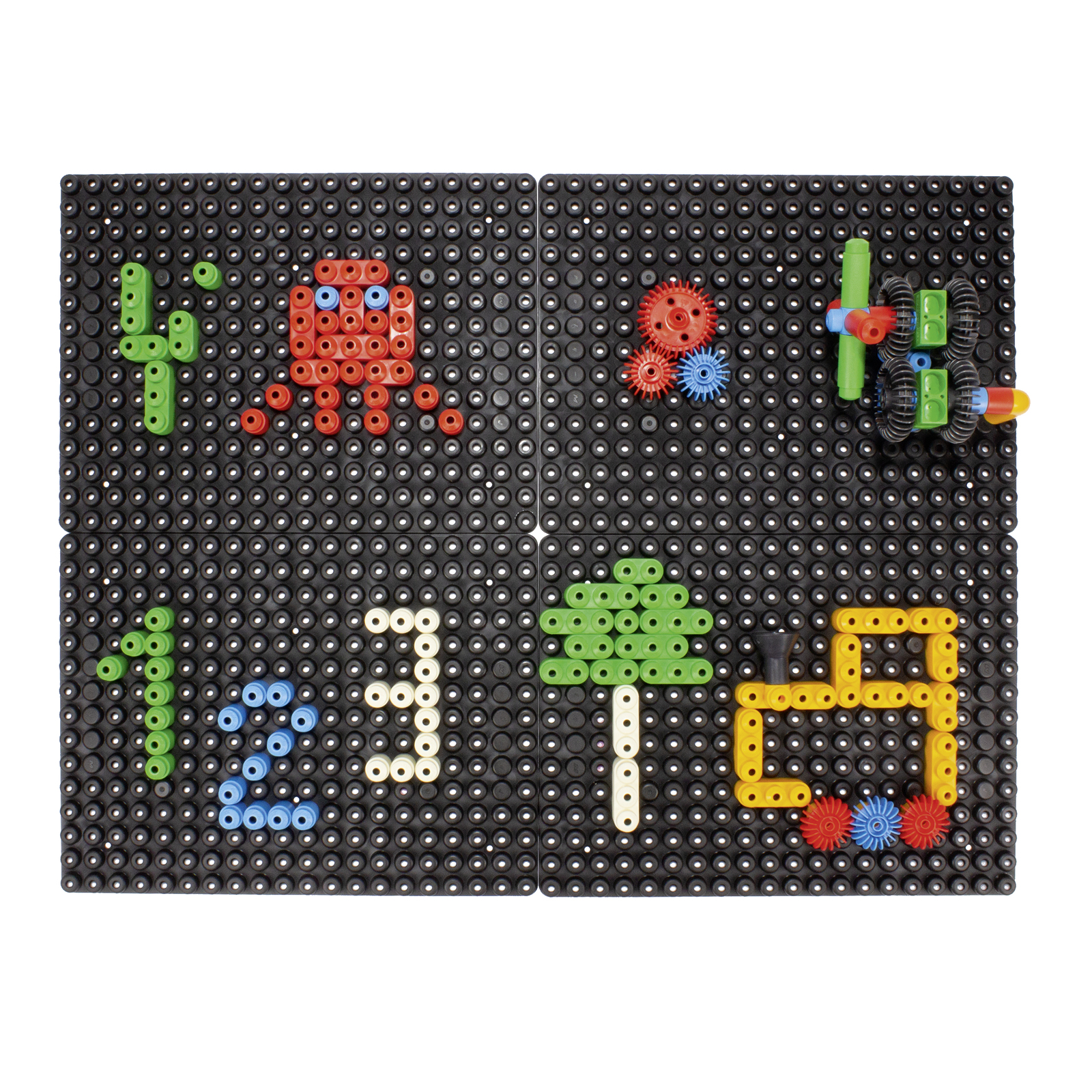 Une fois les méga plaques de construction fixées aux murs, les enfants peuvent utiliser les roues dentées, les briques de construction. Livré sans équipements ni accessoires.Contenu : 4 méga plaques de construction, pieds en caoutchouc, chevilles et vis - Dim. d'une plaque (L x l x ép.) : 38 x 28 x 2 cm