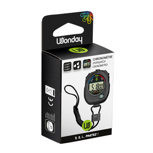 Chronomètre avec mode alarme, étanche, noir mesure à la seconde la durée du parcours et d'entrainement, définition: 1/100 secondes, fonction compte à rebours, avec boussole, avec cordon (longueur: 1000 mm),et 1 pile LR44 inclus. L'unité