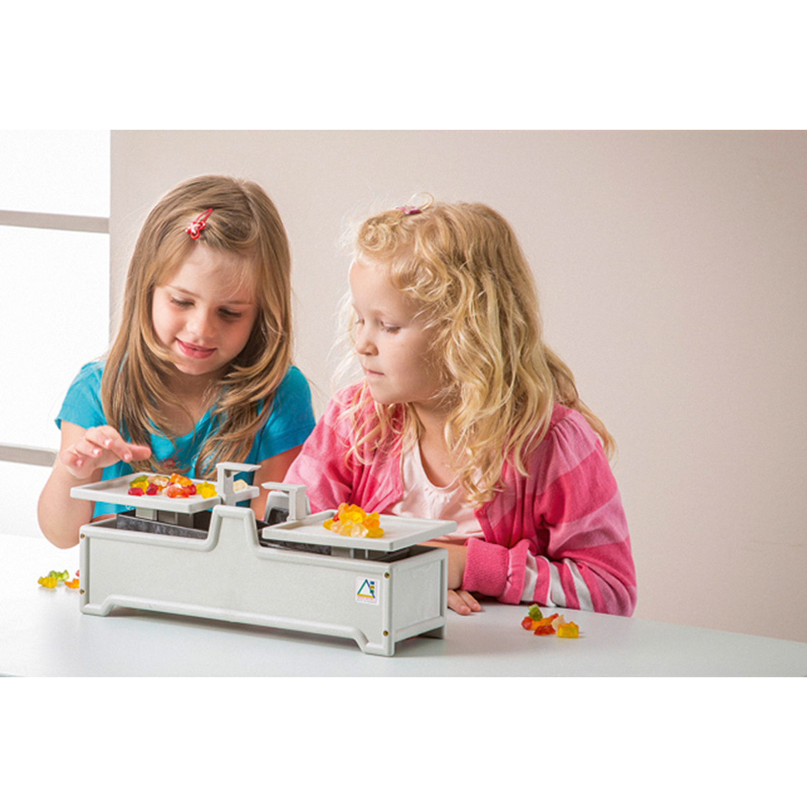 Balance scolaire à plateaux pour réaliser des pesées de 0,5 g à 2 kg. Stable et fabriquée en plastique résistant, cette balance est précise à + ou - 0,5 gramme. Réglage manuel. Livrée avec 2 poids.Dim. (L x l x H) : 38 x 13 x 13 cm - L'unité
