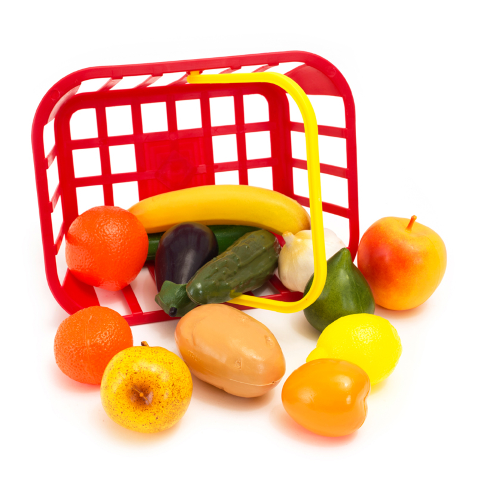 Assortiment de fruits et légumes. Matière : plastique.Contenu : 14 pièces