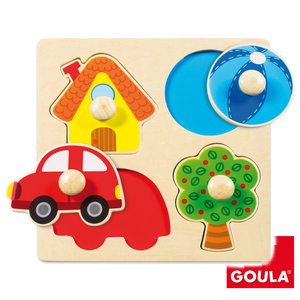 L’enfant est guidé par la silhouette des formes et les couleurs sur le socle.Contenu : 4 pièces et 1 support en bois - Dim. (L x l x ép.) : 22 x 22 x 3 cm