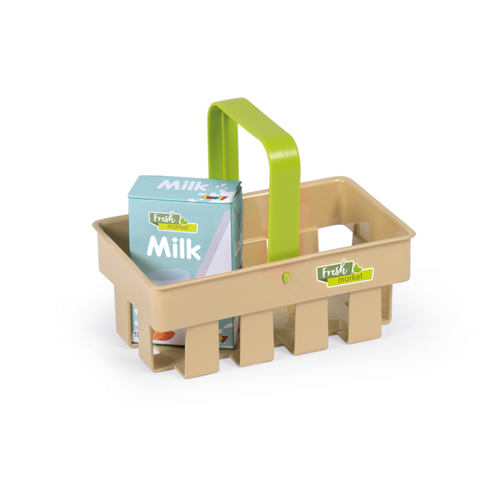 Marchande avec plusieurs fonctions de jeu : vrai distributeur de nourriture en vrac, caisse enregistreuse, lecteur de code-barres électronique, balance mécanique... 43 accessoires + panier.Dim. (L x l x H) : 60 x 60 x 89,6 cm