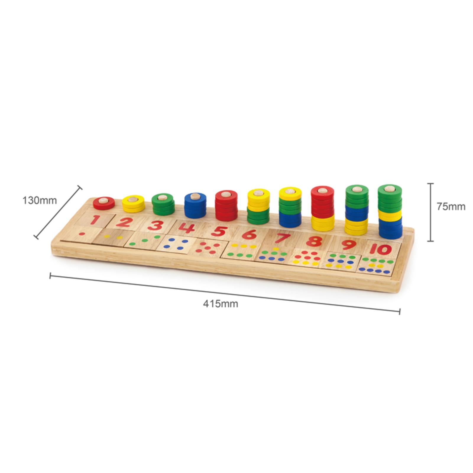 But du jeu : apprendre à compter tout en s'amusant. Il suffit de placer le bon nombre d'anneaux sur le bon mât, puis de mettre les bons morceaux de bois numérotés et ceux avec les points devant ce mât.