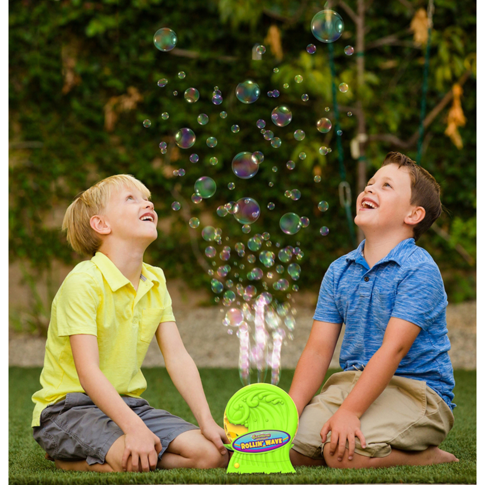 En appuyant sur un bouton, cette conception innovante libère un flux infini de bulles ! Versez simplement la solution Gazillion Bubbles dans le bac inférieur, appuyez sur le bouton « on » et regardez le plaisir des bulles commencer.