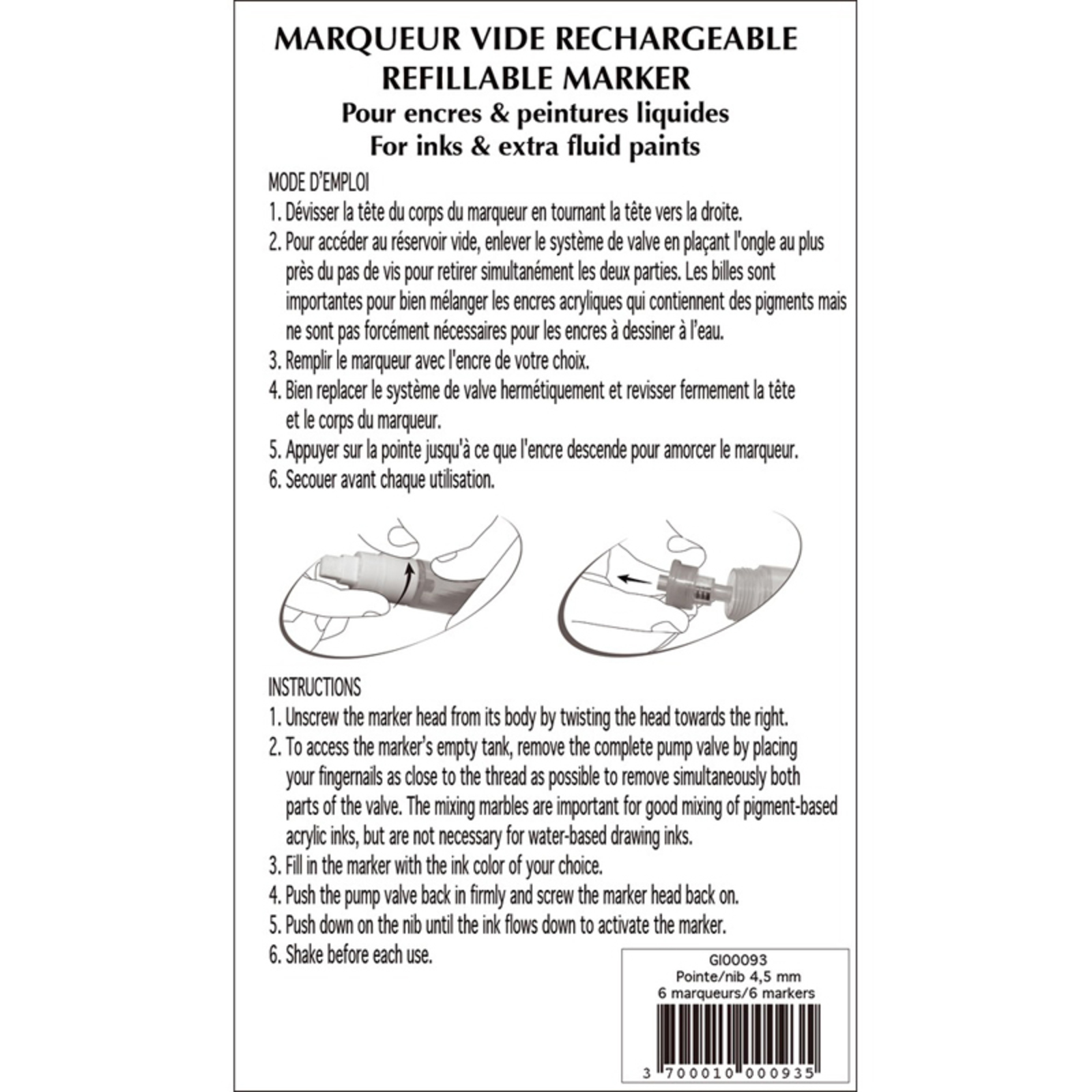 6 MARQUEURS VIDES POUR ENCRE ET PEINTURE