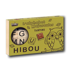 Contenu : 26 tampons en bois avec les lettres de l’alphabet animaux et 2 encreurs