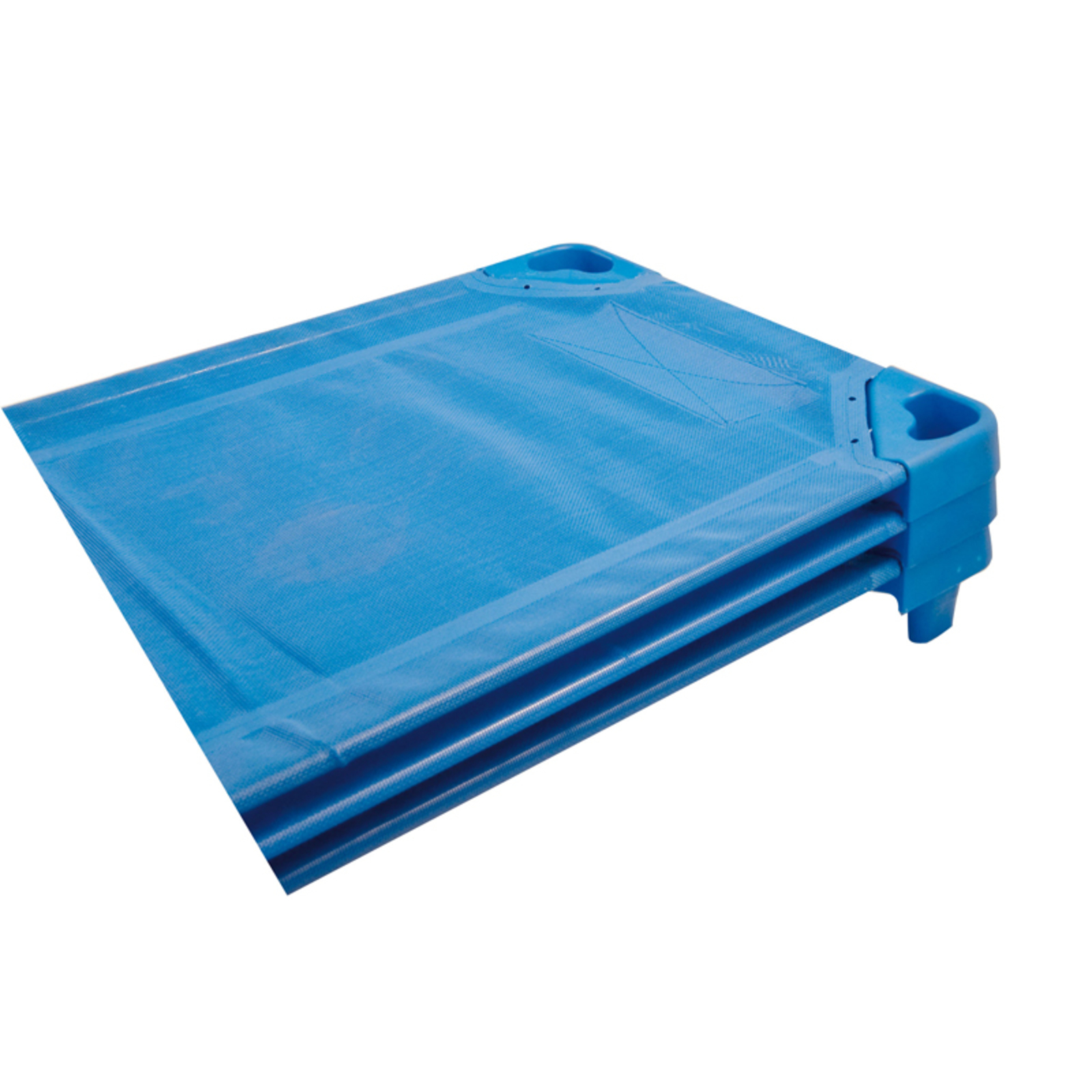 Assemblé. Facilement empilable. Toile lavable et respirante, certifiée M2 : retardateur de flamme. Tissu renforcé au point de fixation.Dim. (L x l) : 55 x 130 cm