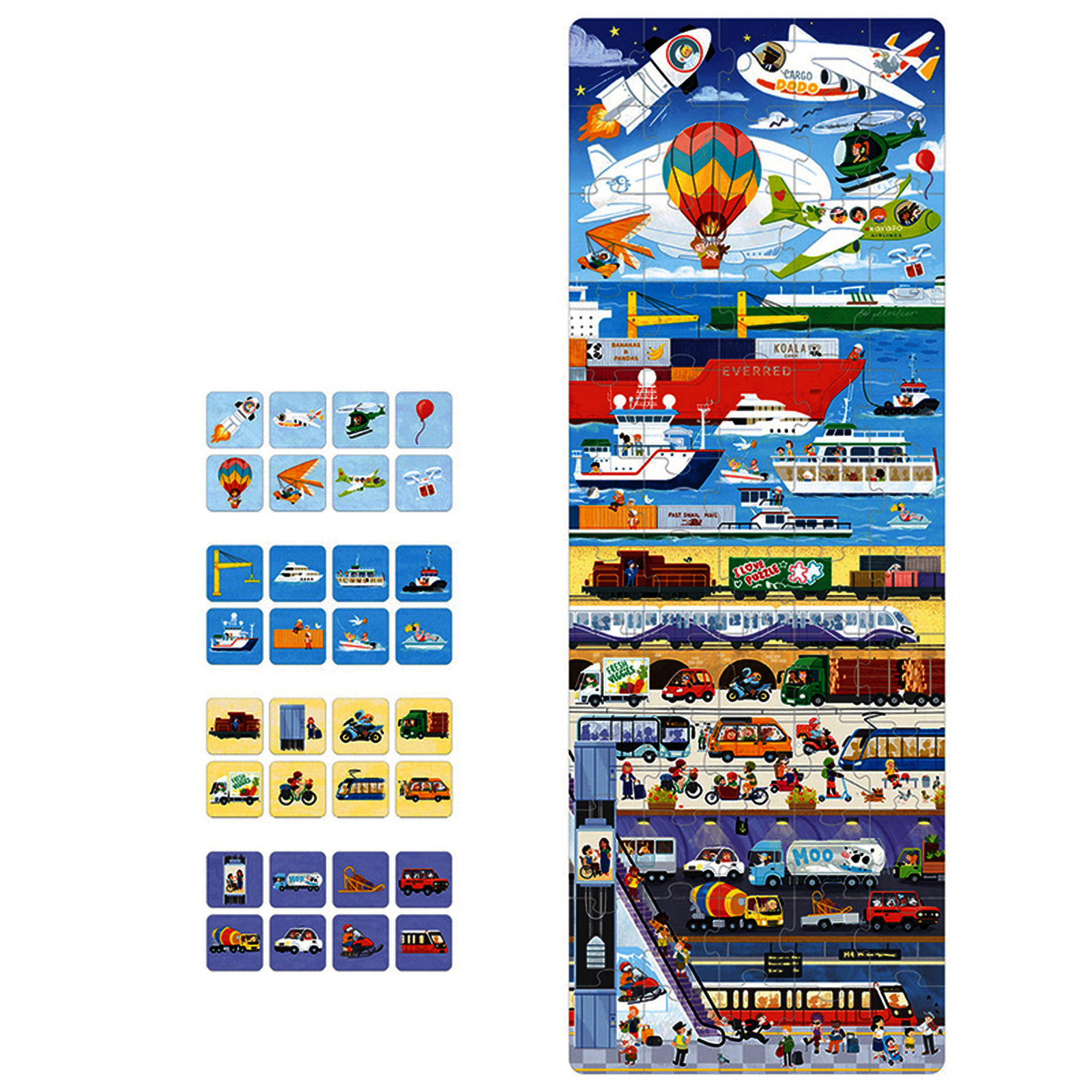 PUZZLE + LES TRANSPORTS 62 PIECES + 32 CARTES ILLUSTREES