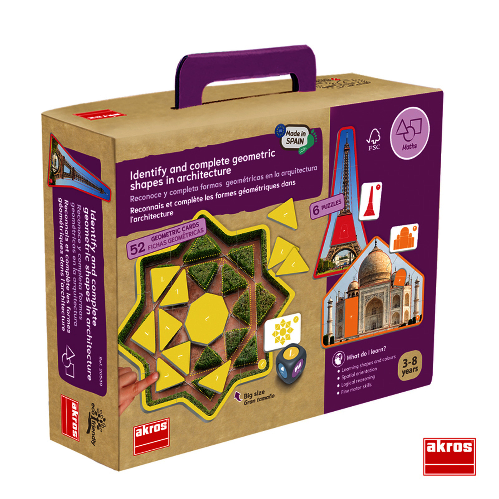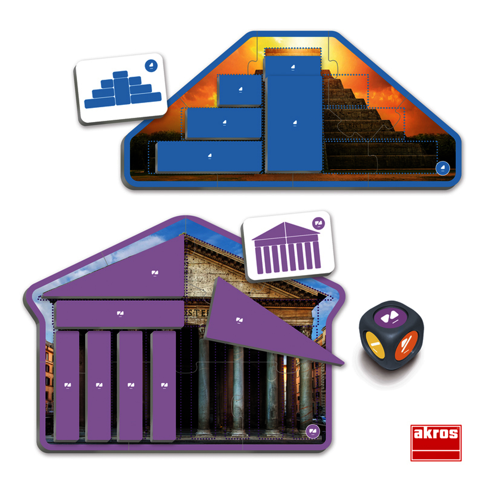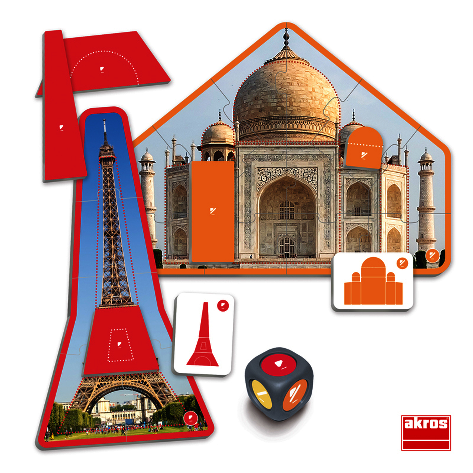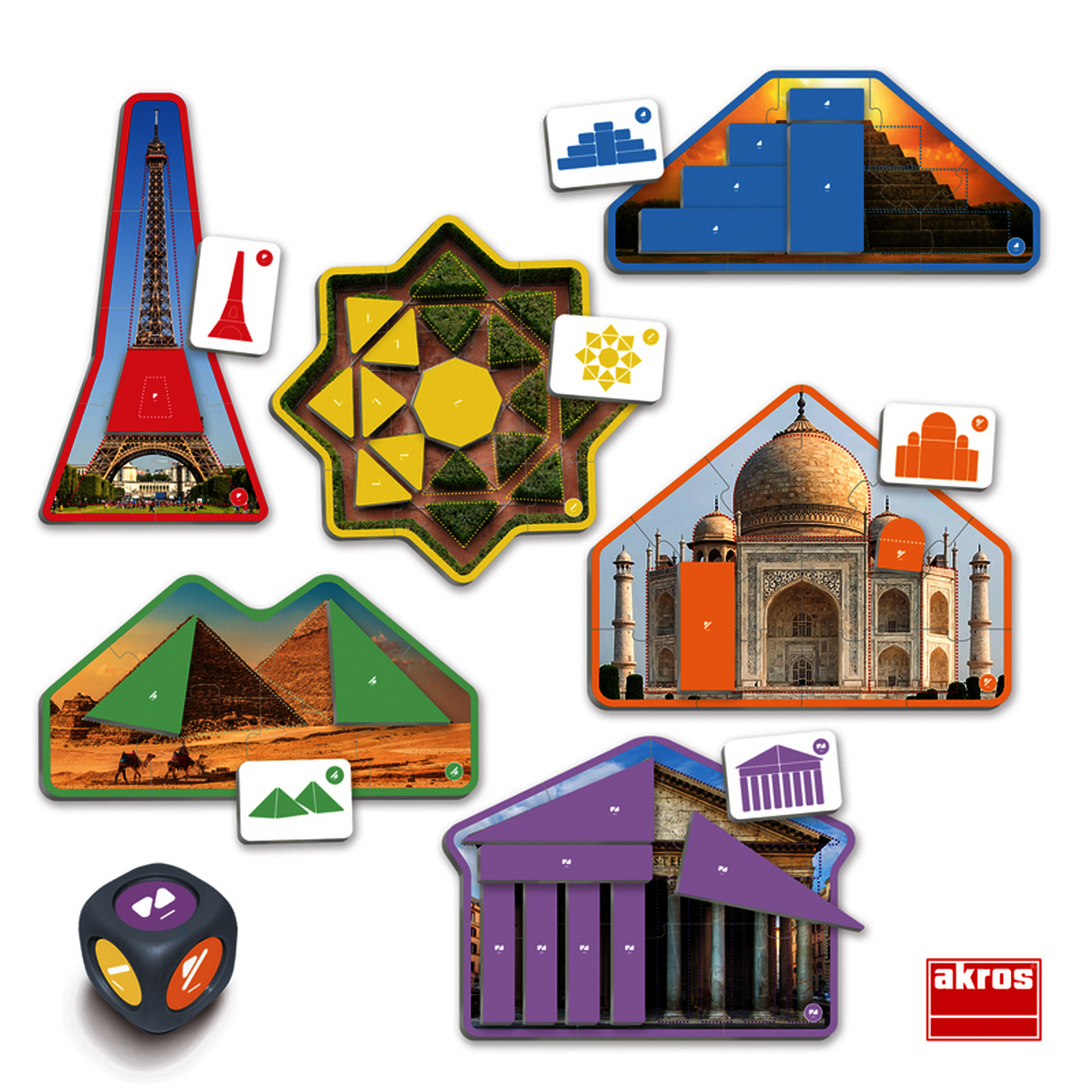 Jeu d?observation pour rep?rer les formes g?om?triques dans l?architecture. Les enfants lancent les d?s, observent les photos r?elles et compl?tent les puzzles. Pour d?velopper attention, vocabulaire et rep?rage spatial.