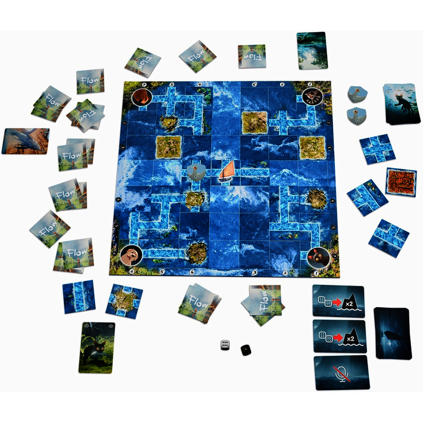 But du jeu : dans Flow, les joueurs coop?rent pour relier 4 animaux au bateau avant la fin du temps. Le jeu d?veloppe collaboration, r?flexion rapide et planification chez les enfants.