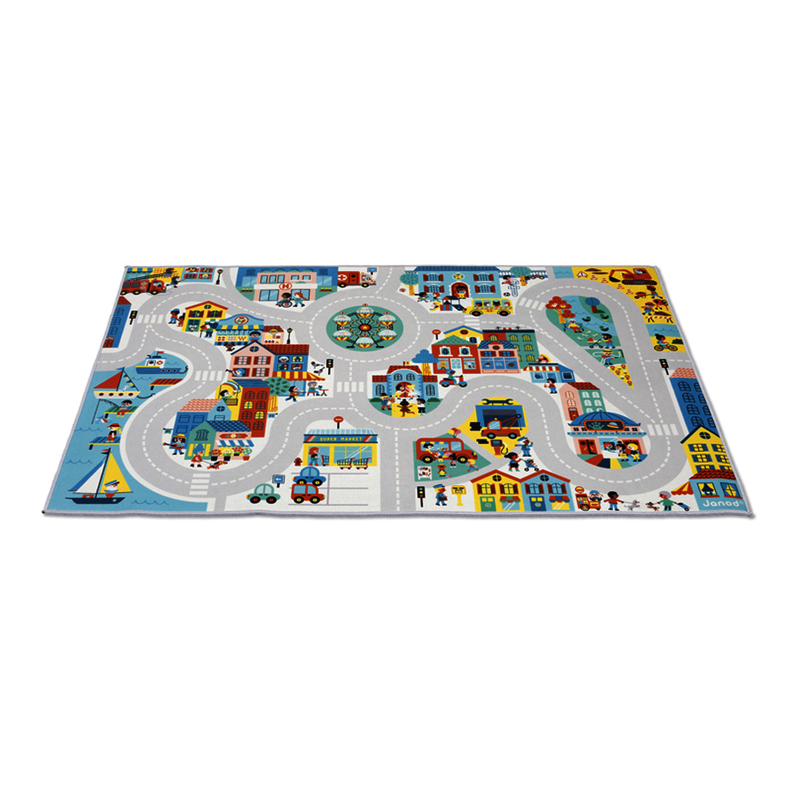 Tapis de jeu antid?rapant. Avec circuit, pour parcourir la ville avec ses petites voitures.