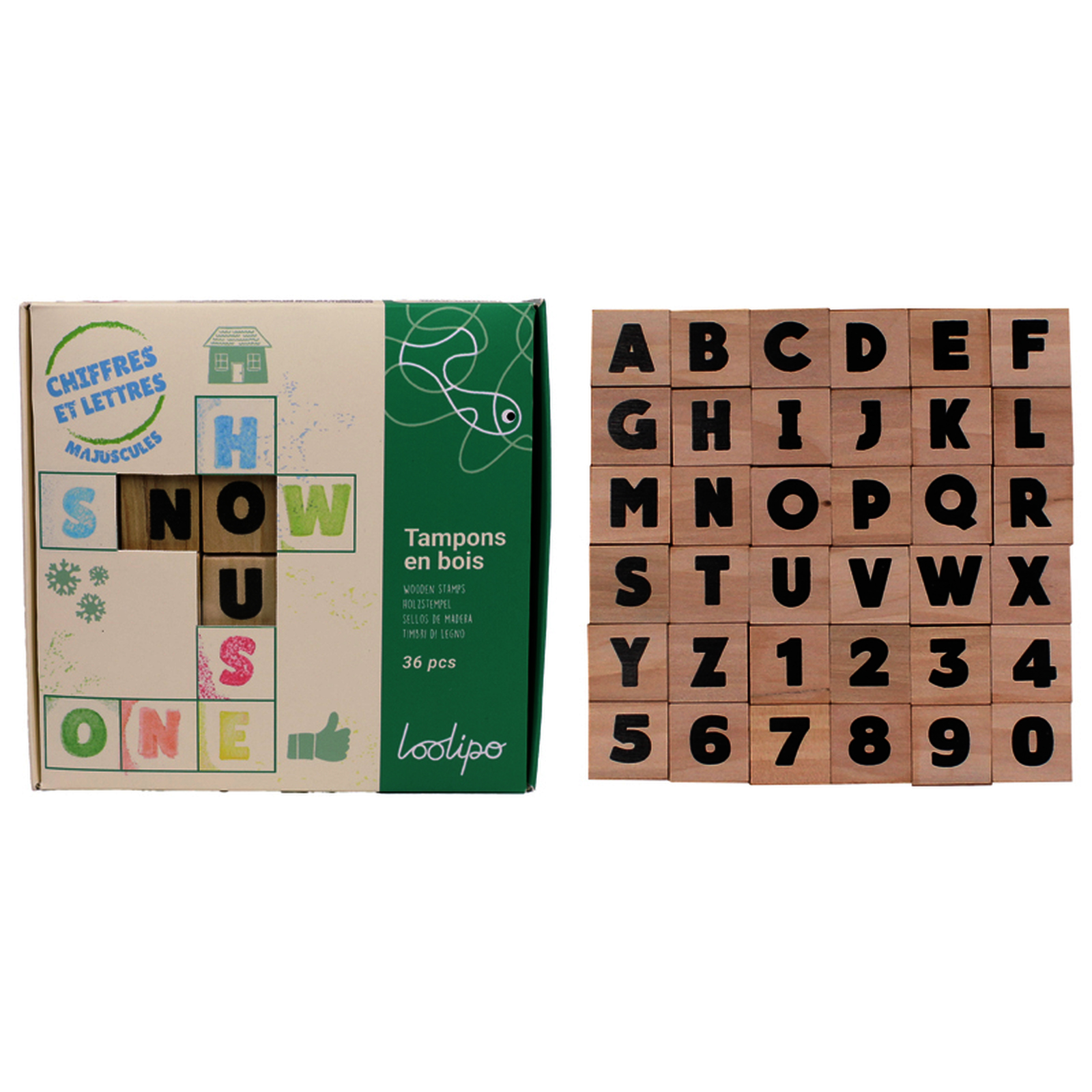 36 TAMPONS BOIS ALPHABET ET CHIFFRES