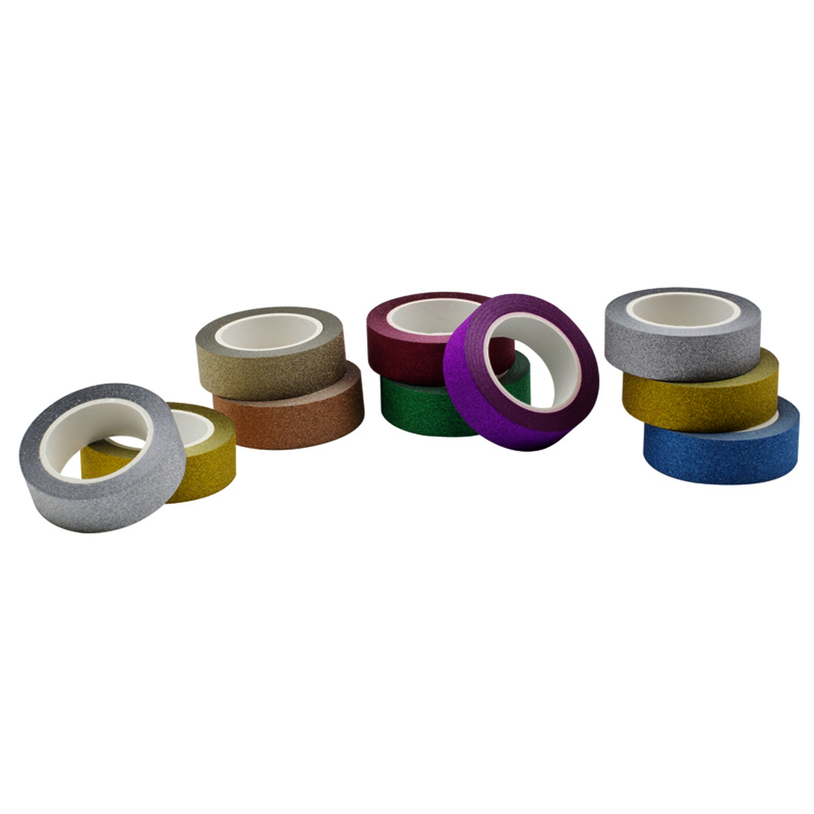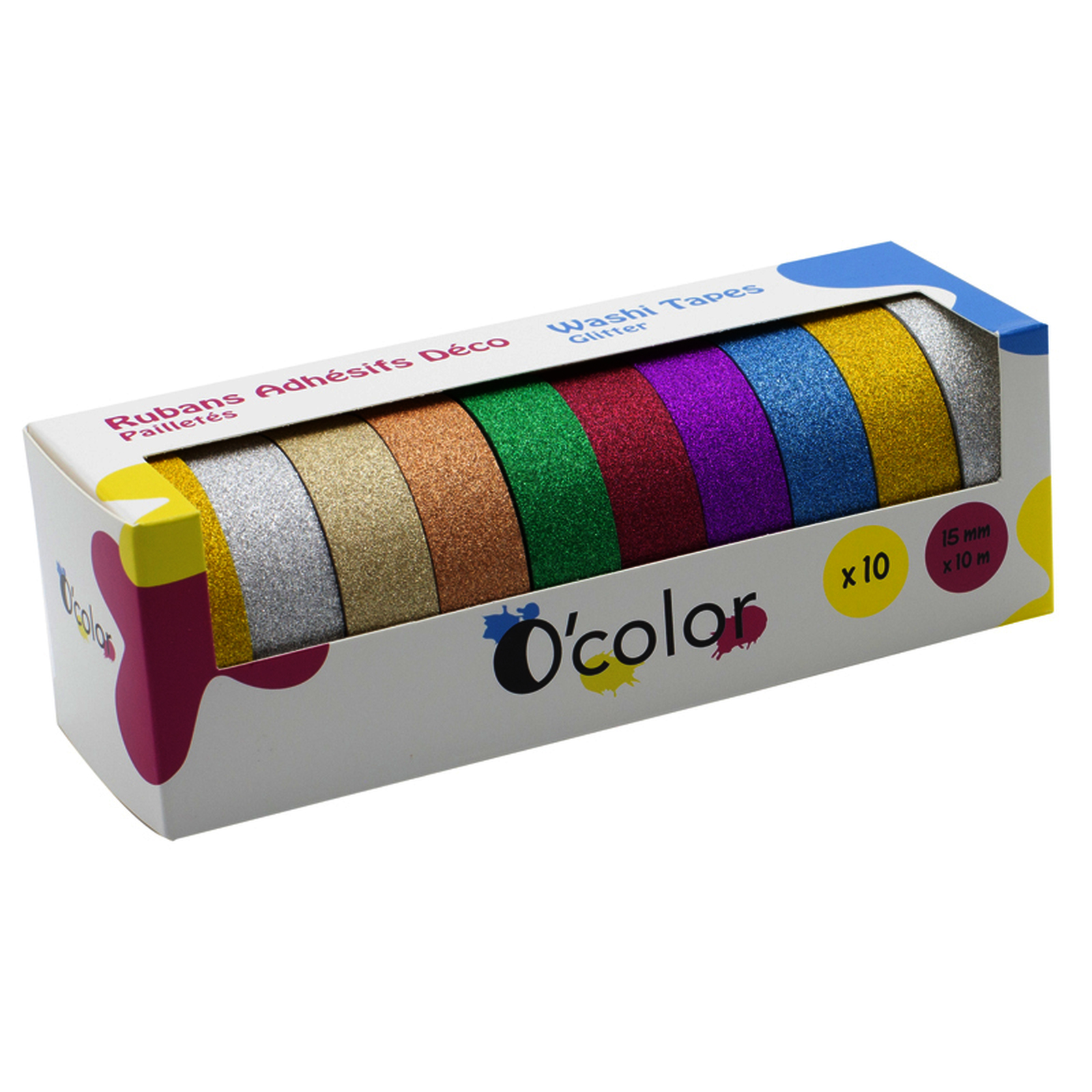 10 RUBANS ADHESIFS COLORIS PAILLETES ASSORTIS 15MMX10M