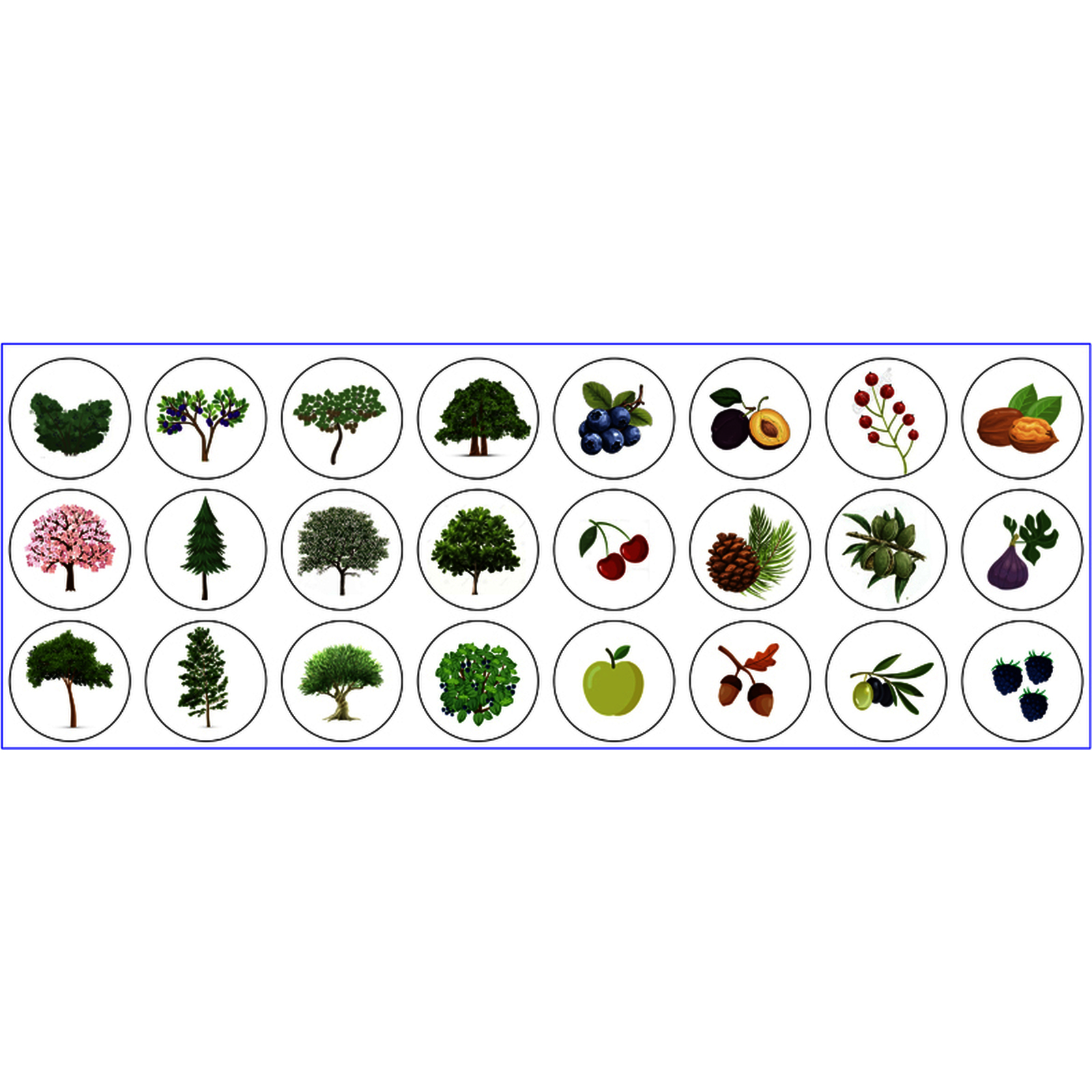 Rouleau de 360 gommettes arbres ?33 mm. Parfait pour d?velopper motricit? fine, logique et cr?ativit? des enfants en cr?che ou maternelle. Th?mes vari?s : ch?ne, figuier, noyer, cerisier?