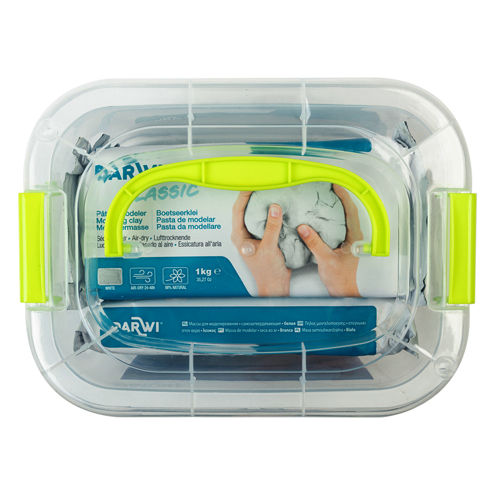 La p?te autodurcissante Darwi, r?put?e pour la finesse de son grain, est utilis?e pour tous travaux de modelage ou de sculpture. Sans odeur et ne colle pas aux mains, ce qui permet un travail agr?able. La p?te est souple et semi-?lastique. Elle ne se r?tracte pas en s?chant et est totalement opaque. La Darwi Classic est blanche et mi-dure apr?s s?chage. Elle peut ?tre teint?e avec des peintures.